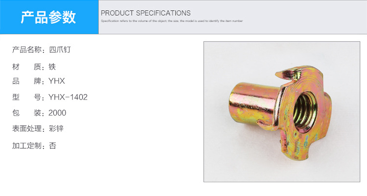 您的位置: 首页 ->  产品中心  -> 螺丝系列  -> 三孔T帽  -> 四爪钉
